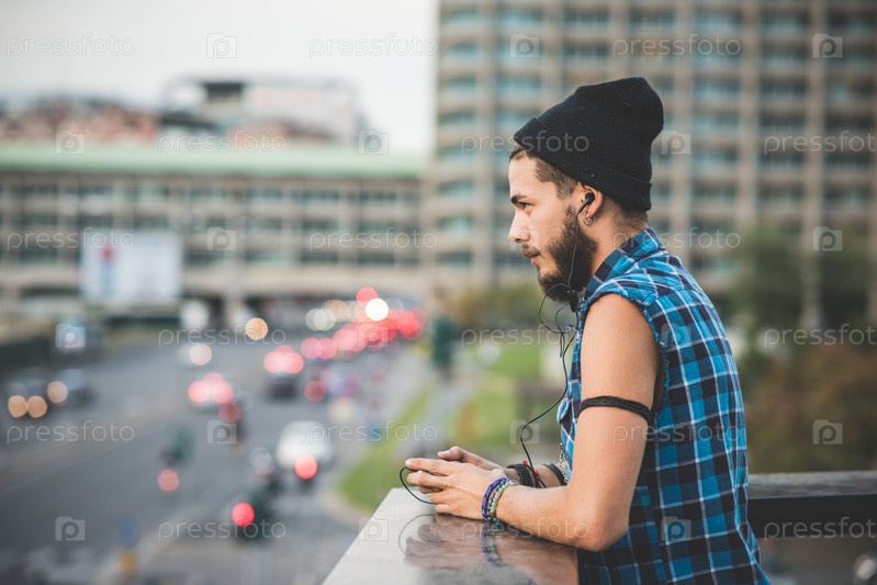 Молодой красивый бородатый мужчина-хипстер