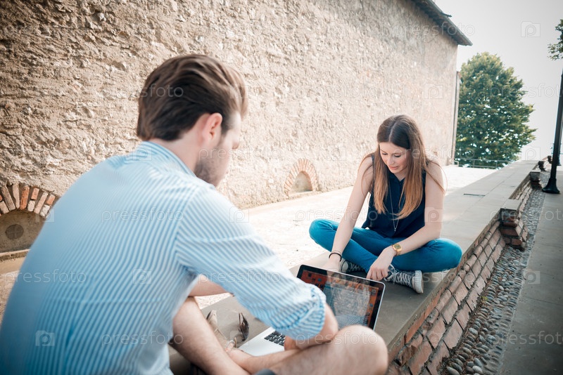 Молодая пара с гаджетами