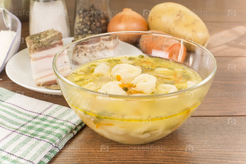 Суп с клецками и ветчиной