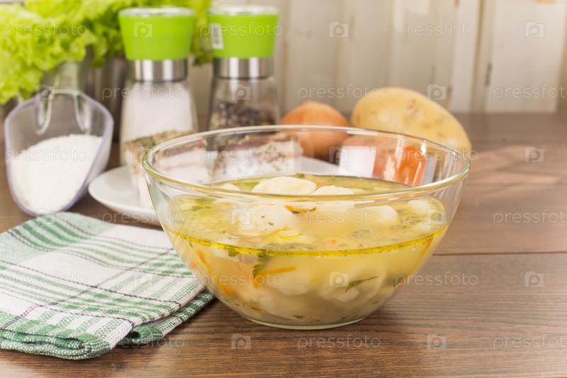 Суп с клецками и ветчиной