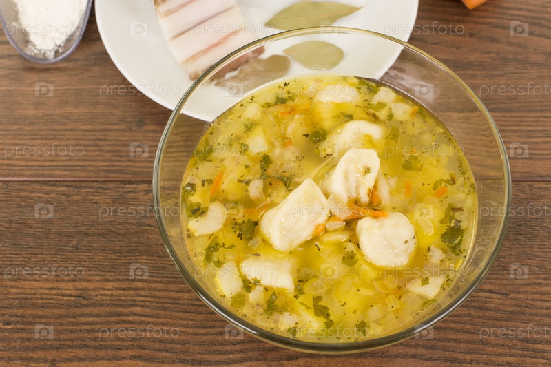 Суп с клецками и ветчиной