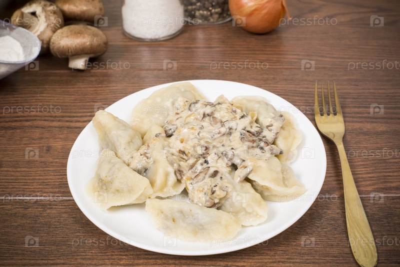 Пельмени с грибным соусом
