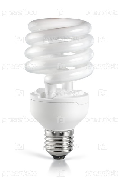 Энергосберегающая люминесцентная лампочка на белом фоне