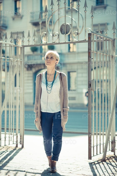 Молодая блондинка с короткой стрижкой