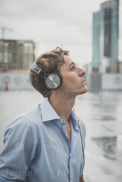Молодой блондин в наушниках