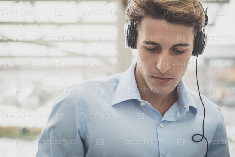 Молодой блондин в наушниках