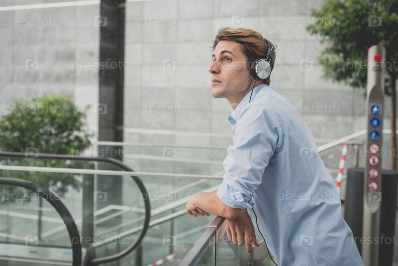 Молодой блондин в наушниках