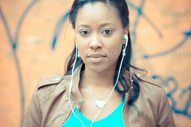 Молодая женщина в наушниках на улице