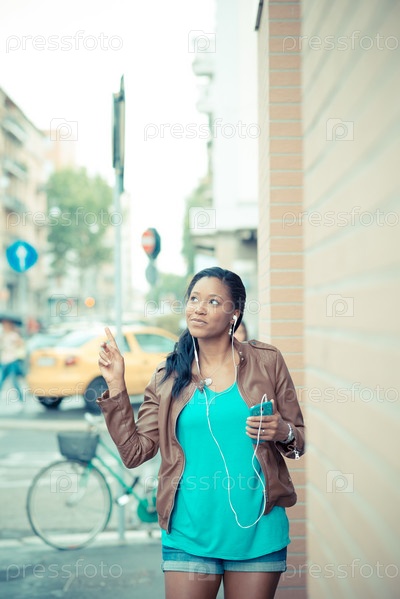 Молодая женщина в наушниках на улице