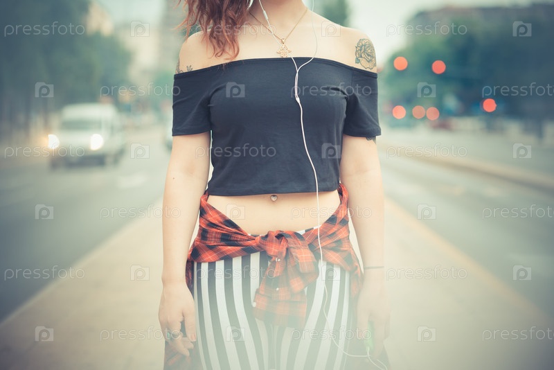 Девушка-хипстер с рыжими вьющимися волосами