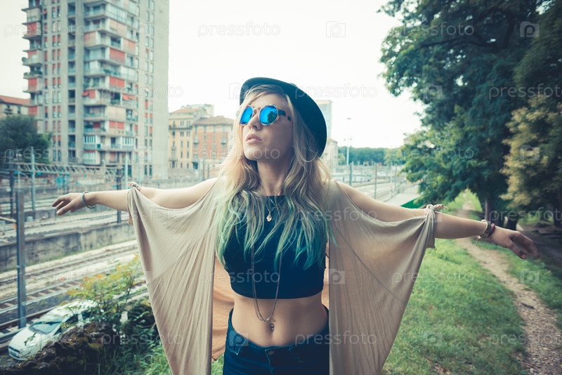 Красивая молодая блондинка-хипстер