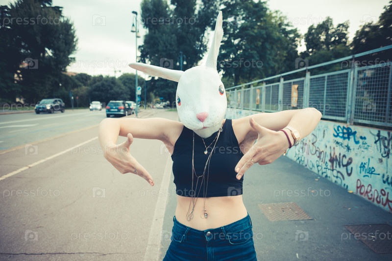 Женщина в маске кролика