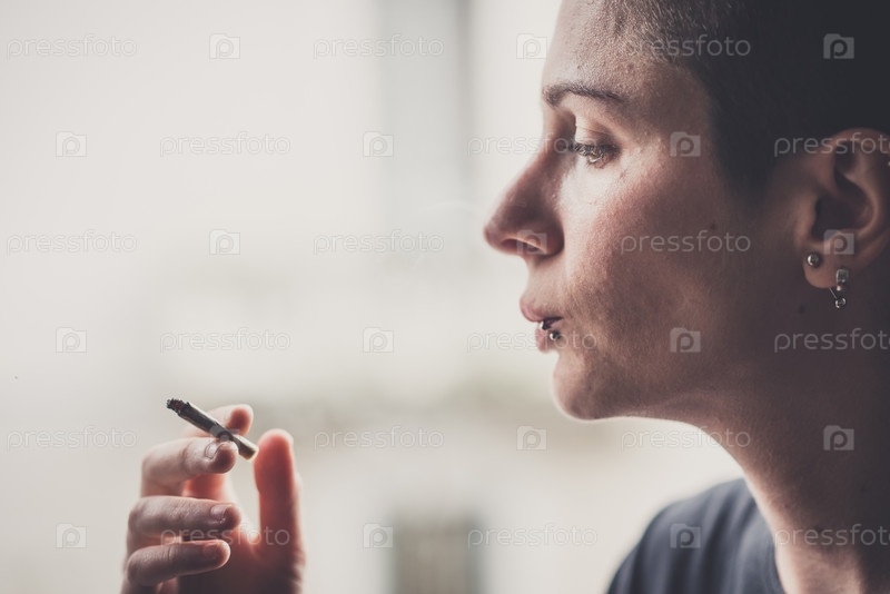 Молодая женщина курит
