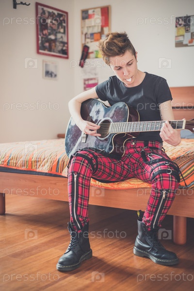 Молодая женщина играет на гитаре