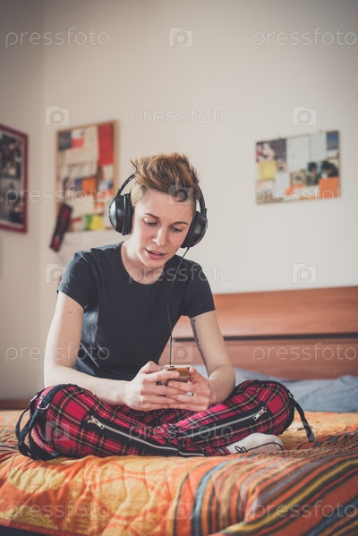 Молодая женщина слушает музыку