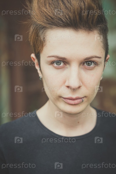 Молодая женщина с короткой стрижкой
