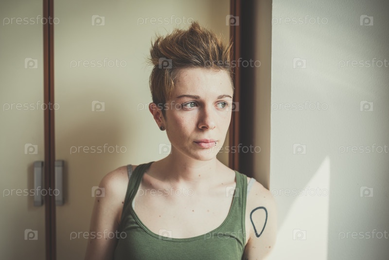 Молодая женщина с короткой стрижкой