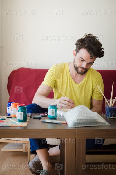 Современный хипстер занимается рисованием