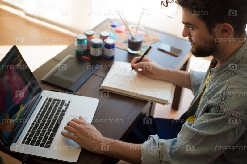 Современный хипстер занимается рисованием