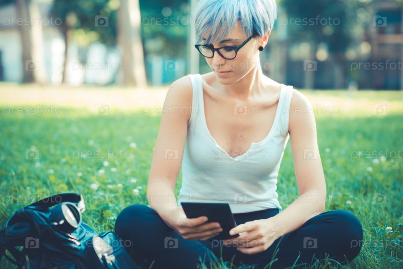 Молодая блондинка с планшетом