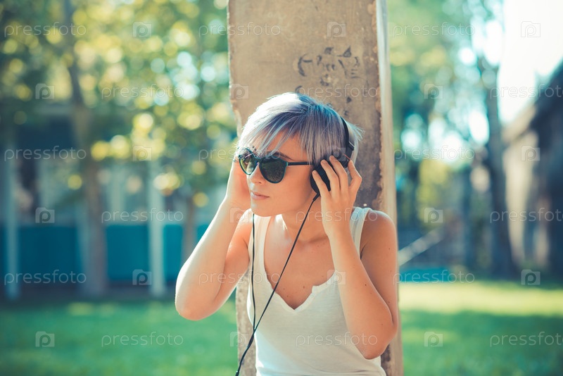 Молодая женщина в наушниках