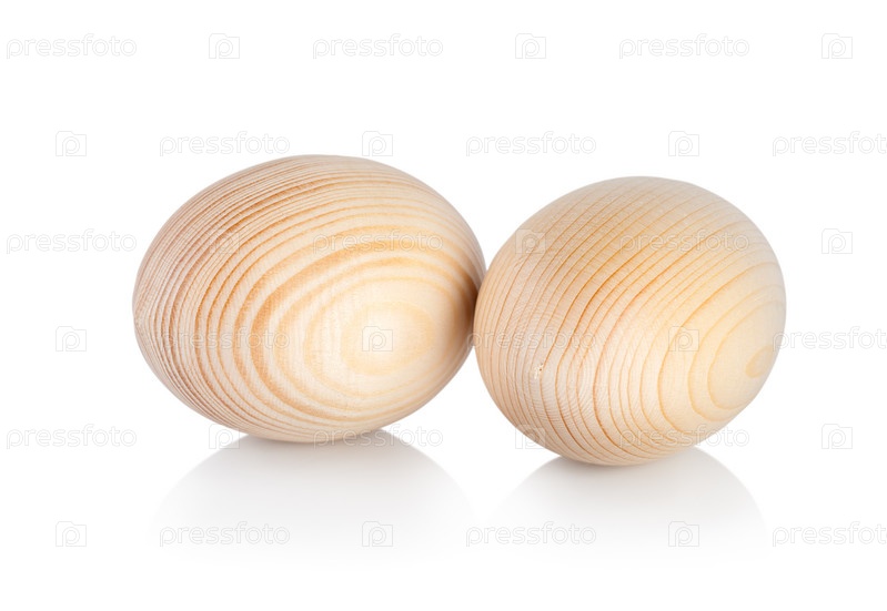 Деревянные пасхальные яйца на белом фоне