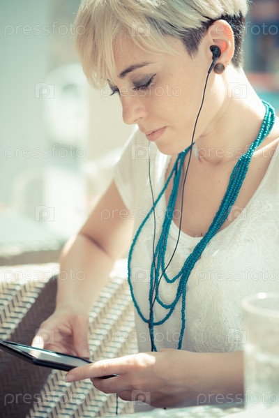 Молодая блондинка с планшетом