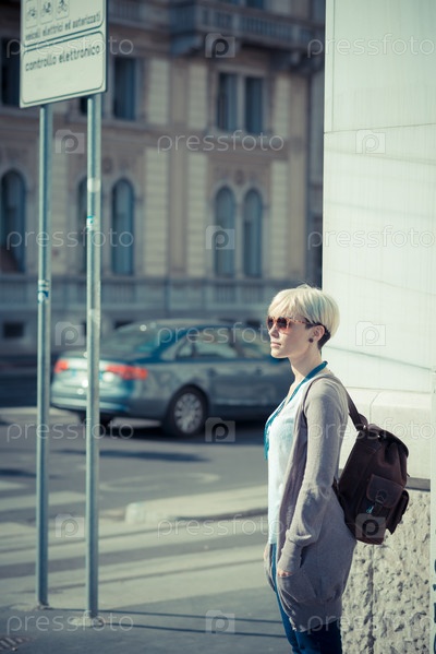 Молодая блондинка с короткой стрижкой