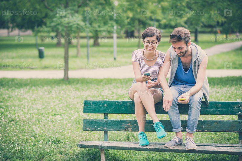Пара друзей со смартфоном
