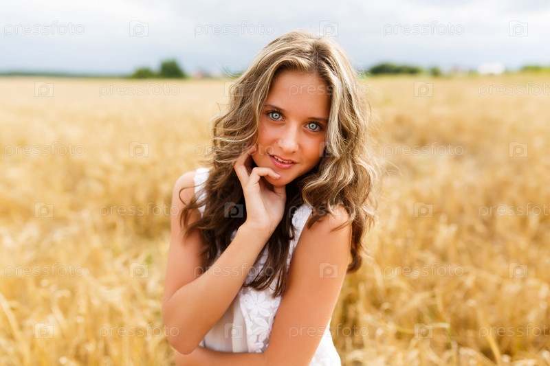 Красивая девушка на пшеничном в поле