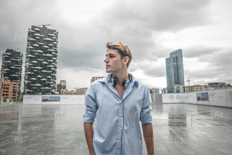 Молодой блондин с наушниками