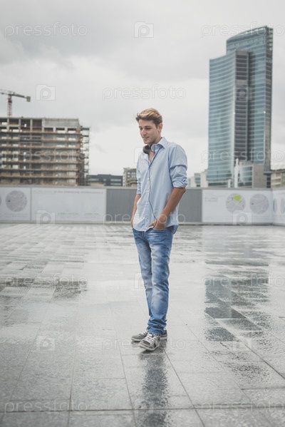 Молодой блондин с наушниками
