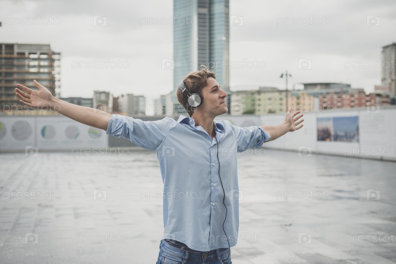 Молодой блондин с наушниками