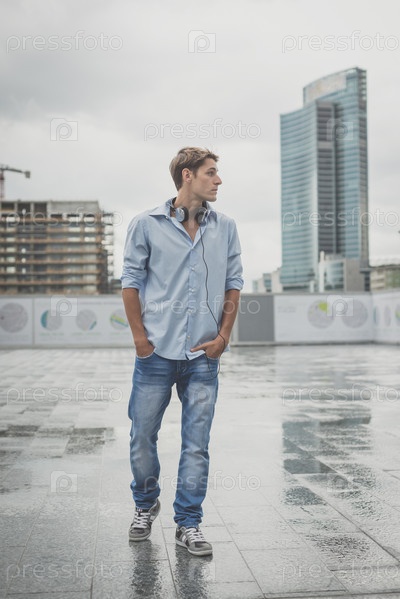Молодой блондин с наушниками