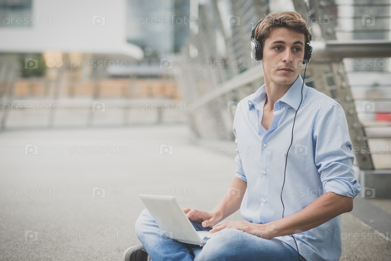 Молодой блондин с наушниками