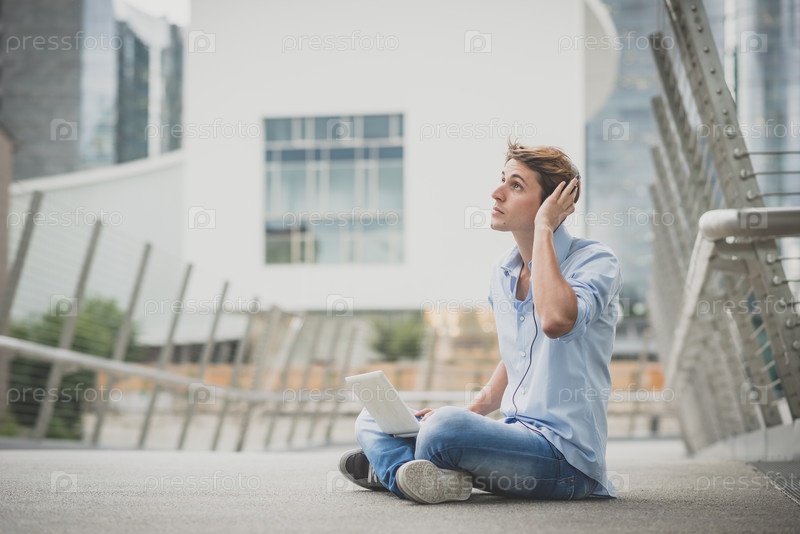 Молодой блондин с наушниками