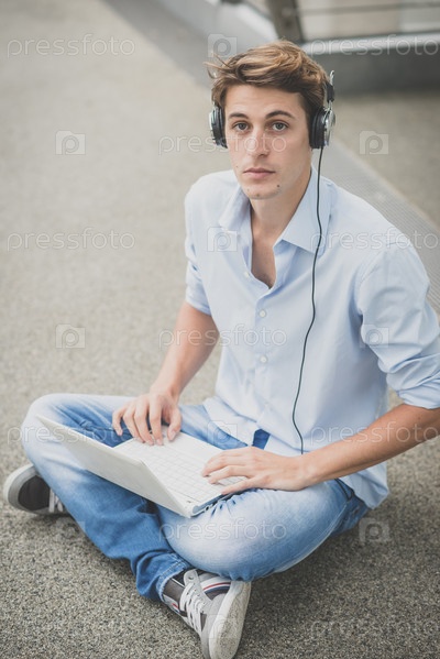 Молодой блондин с наушниками