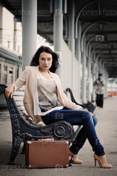Девушка ждет поезда на перроне