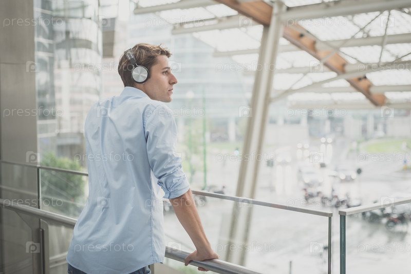 Молодой блондин с наушниками