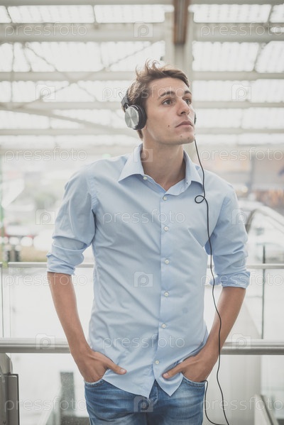 Молодой блондин с наушниками