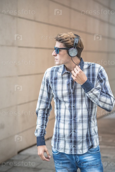 Молодой блондин с наушниками