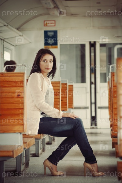 Девушка сидит в электричке