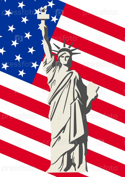Статуя Свободы на фоне американского флага, иллюстрация