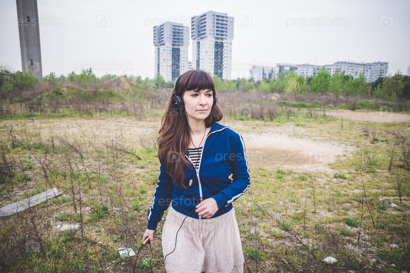 Красивая женщина на пустыре