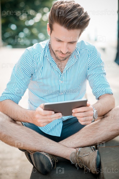 Молодой красивый мужчина с планшетом