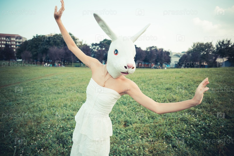 Женщина в маске кролика
