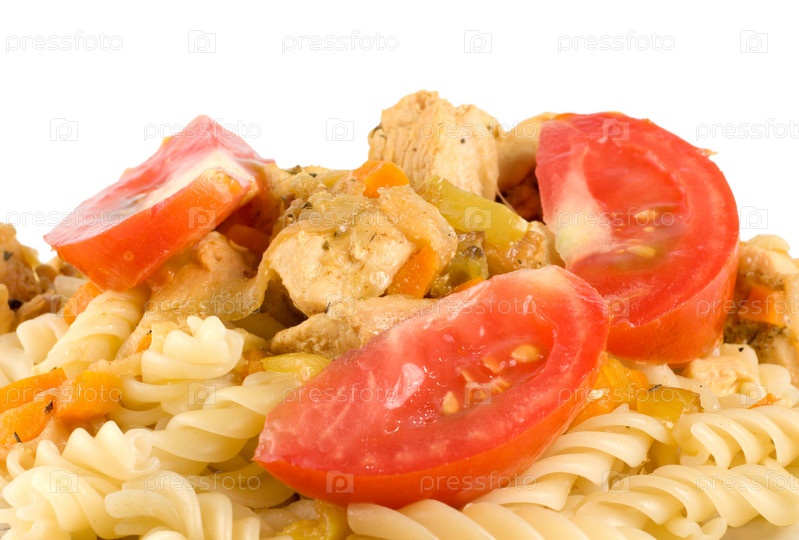 Макароны с мясом на белом фоне