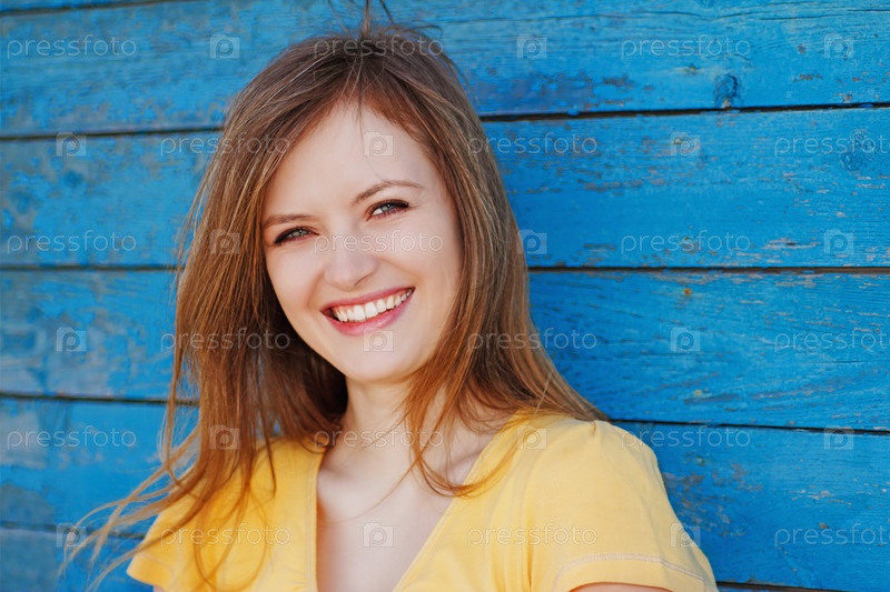 Молодая девушка на фоне старой синей стены