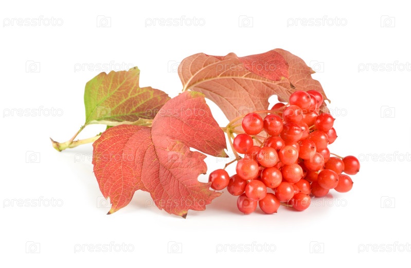Ягоды спелой калины на белом фоне