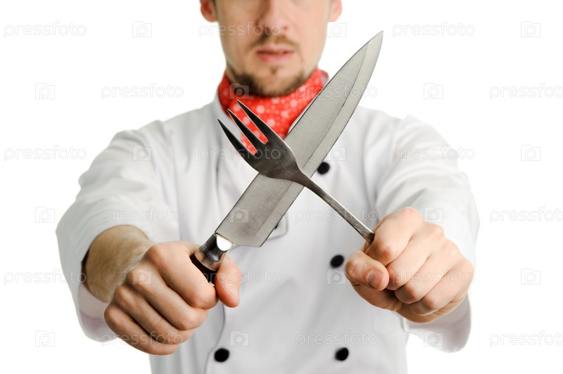 Шеф-повар с вилкой и ножом